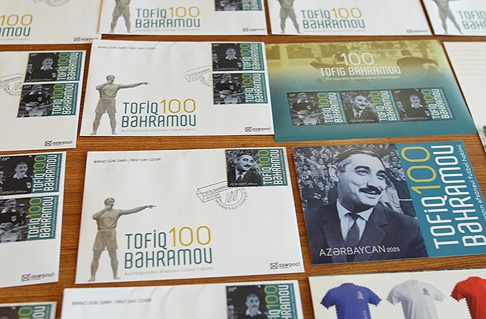 Rekord.az xəbər verir ki, yeni filateliya məhsulu Azərbaycanın əfsanəvi futbol hakimi Tofiq Bəhramovun 100 illik yubileyinə həsr olunub.