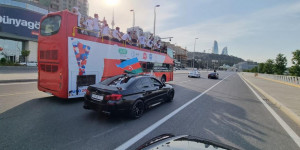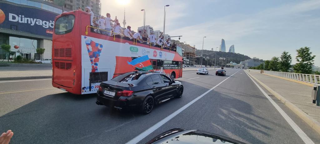 Rekord.az xəbər verir ki, saat 16:30-dan etibarən Hüseyn Cavid parkının yanından yola düşən avtobus və milli komandanın üzvləri, eləcə də azarkeşlər şəhər turu çərçivəsində “Flame Towers”, Qoşa Qala qapısı, Qız qalası, Azneft meydanı və Bayraq meydanı istiqamətində marşrut üzrə hərəkət edib.