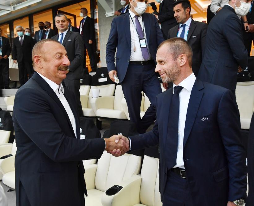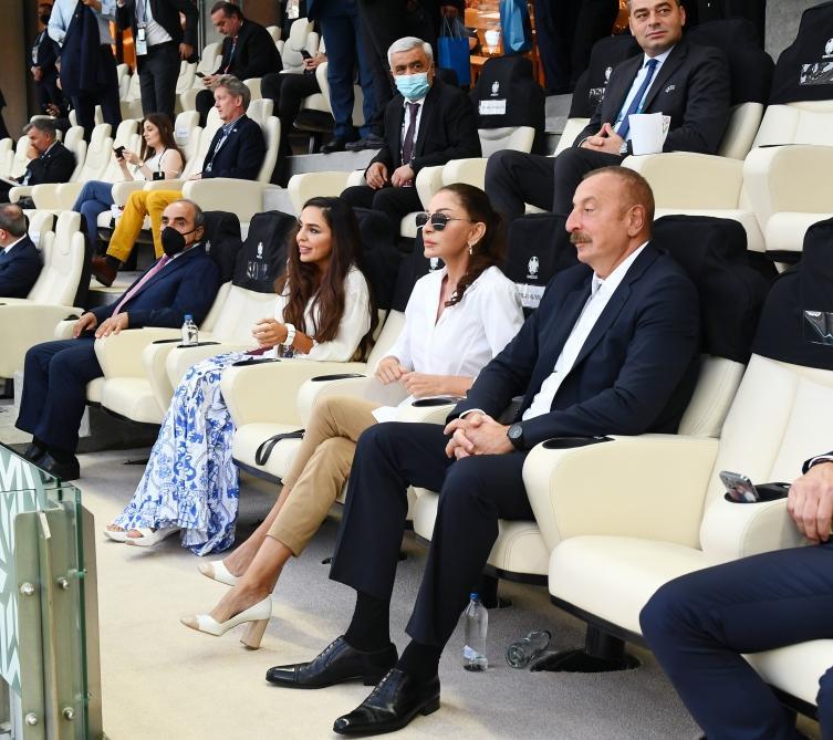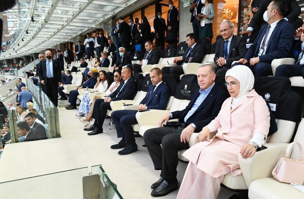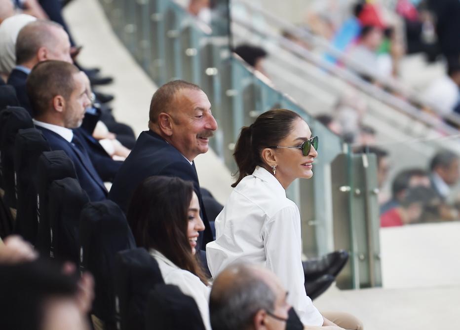 Rekord.az xəbər verir ki, Azərbaycan Respublikasının Prezidenti İlham Əliyev, birinci xanım Mehriban Əliyeva, qızları Leyla Əliyeva, ölkəmizdə rəsmi səfərdə olan Türkiyə Respublikasının Prezidenti Rəcəb Tayyib Ərdoğan və xanımı Əminə Ərdoğan oyuna baxıblar. (AZƏRTAC)