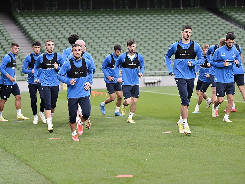 DÇ-2022-nin seçmə mərhələsində sabah İrlandiyanın qonağı olacaq Azərbaycan yığması oyun öncəsi Dublində məşqə çıxıb.