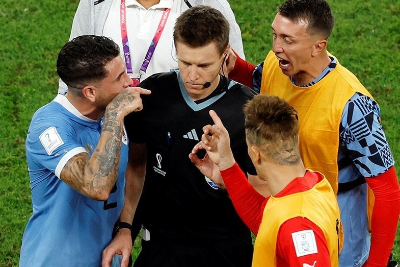 Xəbərdə bildirilir ki, qapıçı Fernando Muslera, müdafiəçilər Xose Mariya Ximenes və Dieqo Qodin, həmçinin hücumçu Edinson Kavaniyə intizam işi açılıb. Onlar Qətərdə keçirilən dünya çempionatının qrup mərhələsində Qanaya 2:0 hesabı ilə qalib gəldikləri matçda baş hakim Daniel Zibertə qarşı kobud və təcavüzkar davranışda ittiham olunurlar. Futbolçular epizodların birində almaniyalı referinin penalti təyin etməməsinə sərt reaksiya veriblər.