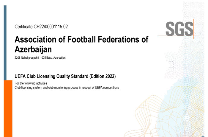 İsveçrənin SGS şirkəti 2023-cü ildə AFFA-nın Klubların Lisenziyalaşdırılması Departamentinin fəaliyyəti ilə bağlı apardığı yoxlamanın nəticələrini açıqlayıb.