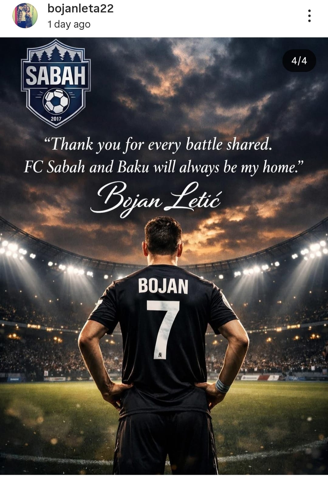 Bu qış fasiləsində “Sabah”dan ayrılan Boyan Letiç paytaxt klubu ilə vidalaşıb.