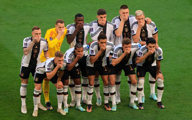 Məlum olduğu kimi, Almaniya millisinin üzvləri Yaponiya ilə matçdan öncə ağzılarını bağlayaraq foto çəkdirmiş və bu foto qısa vaxtda gündəm olmuşdu. Belə ki, almanlar qollarına üzərinə "One Love" yazılmış və göy qurşağının rənglərinin əks olunduğu sarğını taxmaqla LGBT-ə dəstək olmaq istəyib. FİFA isə Qətər hökumətinin tələbi ilə bunu qadağan edincə Almanya millisinin üzvləri məlum addımı ataraq FİFA-ya və Qətər hökumətinə öz etirazlarını çatdırmış oldular.