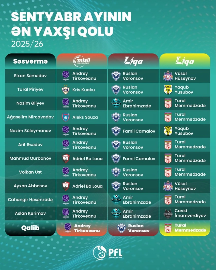 I Liqada bu nominasiyada Ruslan Voronsov, II Liqada Tural Məmmədzadə birinci olub.