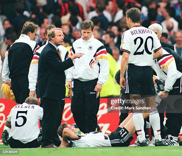 Almaniya: 1. Andreas Köpke, 6. Matias Zammer, 14. Markus Babbel, 5. Tomas Helmer, 19. Tomas Ştrunz, 17. Kristian Zige, 21. Diter Eilst (3. Marko Bode, 46), 8. Mehmet Şoll (Oliver Birhoff, 69), 10. Tomas Hasler, 18. Yurgen Klinsmann (k), 11. Stefan Kuntz
