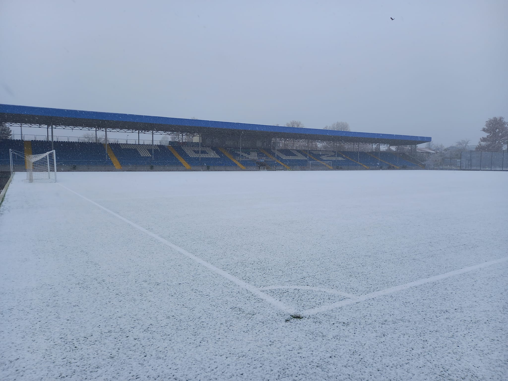 Yağan qar Tovuz şəhər stadionunu fda ağ örpəyə bürünüb. Fotonu klubun mətbuat xidmətinin rəhbəri Süleyman Tağıyev paylaşıb.